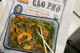 Today, another sad desk lunch that was not that sad - shrimp in black bean sauce with rice noodles.