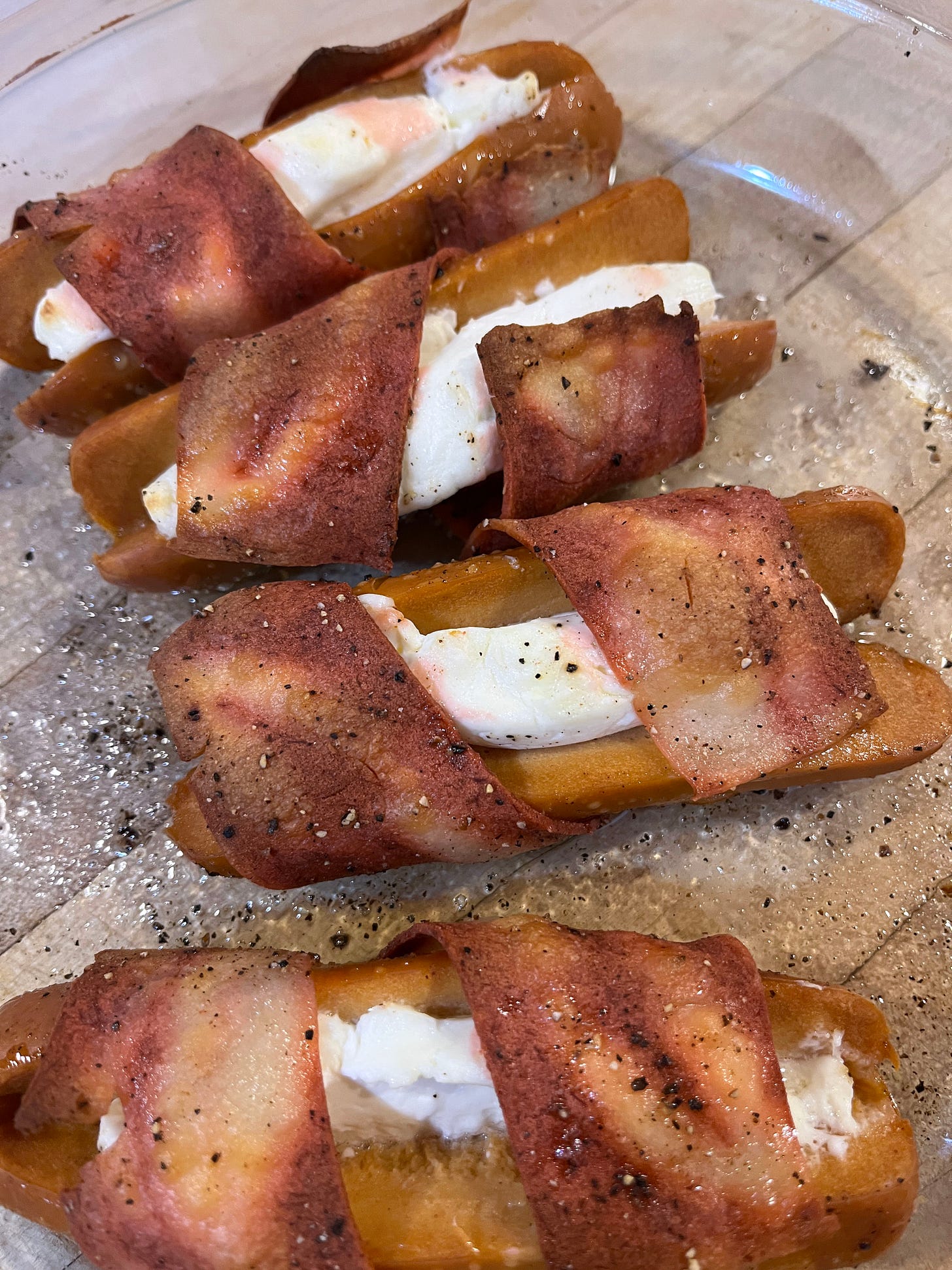 Friend of the blog Elaine sent us this image of veggie dogs wrapped in veggie bacon. I would eat this but I wouldn’t call it a hot dog. Veggie bacon can be quite good - our bodies crave salt.