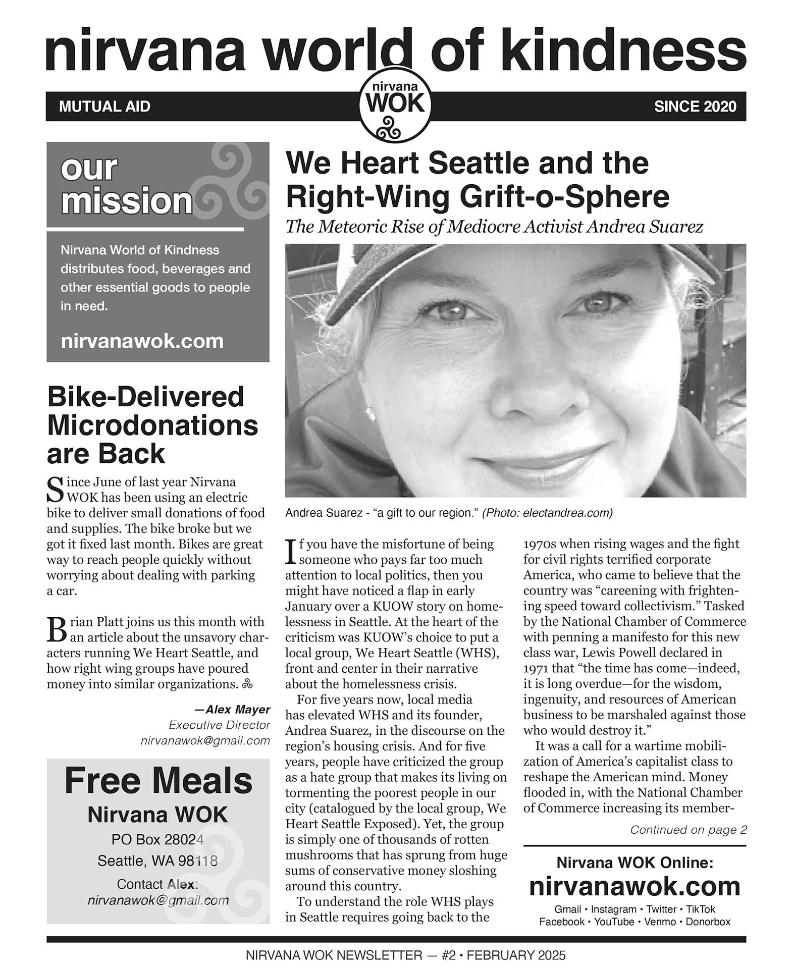 In addition to publishing occasional Substack email newsletter posts Nirvana WOK is now putting out a monthly printed summary of those posts. This is the literature we hand out when we do our meet and greets - where we set up a card table in front of the supermarket and talk to people about our project.