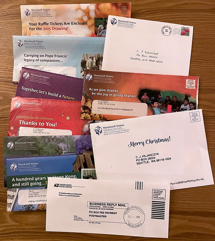 Nirvana WOK signed up for a post office box last year but it was not useful and now we’re cancelling it. Charity organizations sometimes waste money and in our case this was a defenestrated $200. After a year (about 50 cents per day) the only mail Nirvana WOK got was addressed to Charles J. Kiljanczyk - a former user of the P.O. box who died over 25 years ago. Charles was born in 1914, began working for the Potlatch timber corporation in 1939 and served in the Air Force in World War II. “His greatest interest was in botany, especially fern and mushroom identification,” according to the Lewiston (Idaho) Tribune.