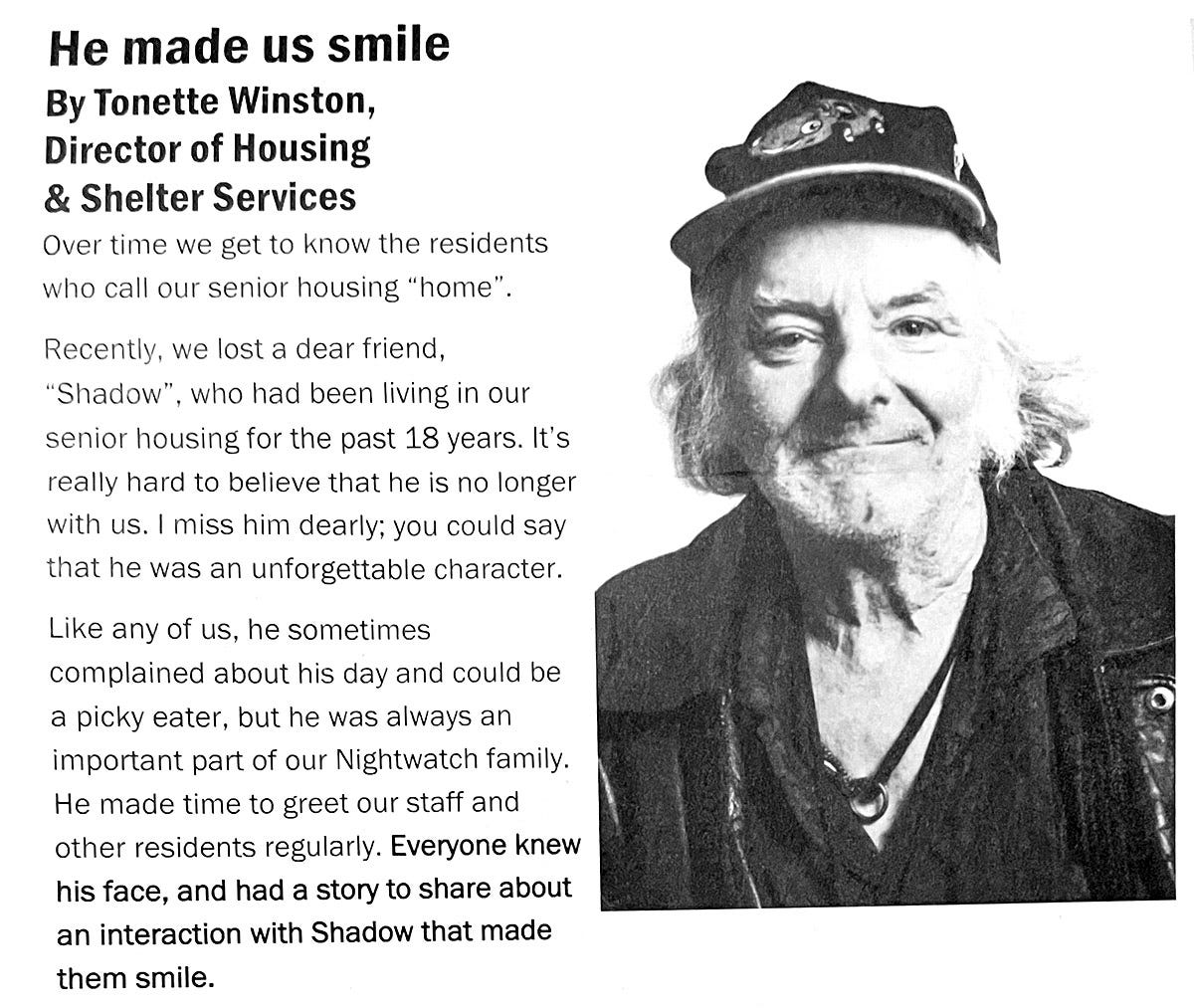 Shadow lived rent-free in a single room occupancy situation for 18 years.