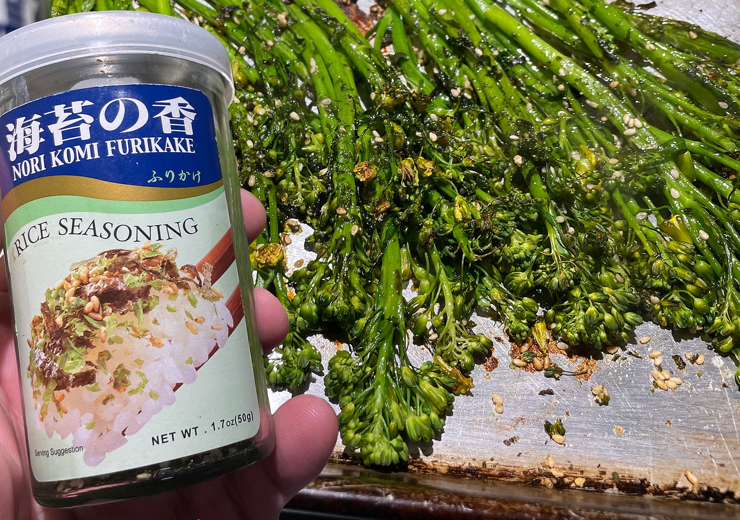 Top some broccolini with a liberal sprinkling of furikake and broil it. Then add rice vinegar and sesame oil. Or, add the same toppings to some freshly sliced cucumbers. Delightful!